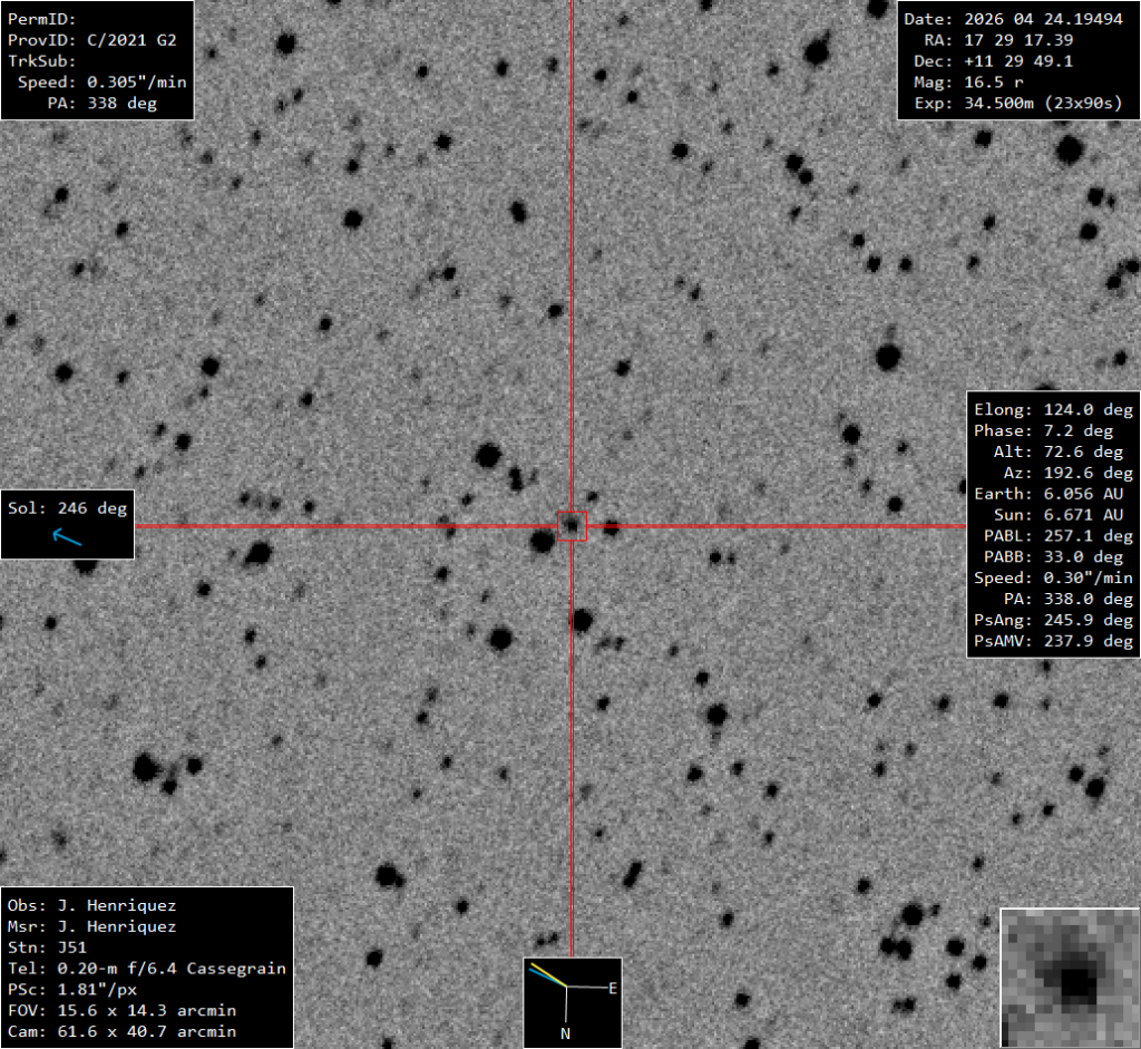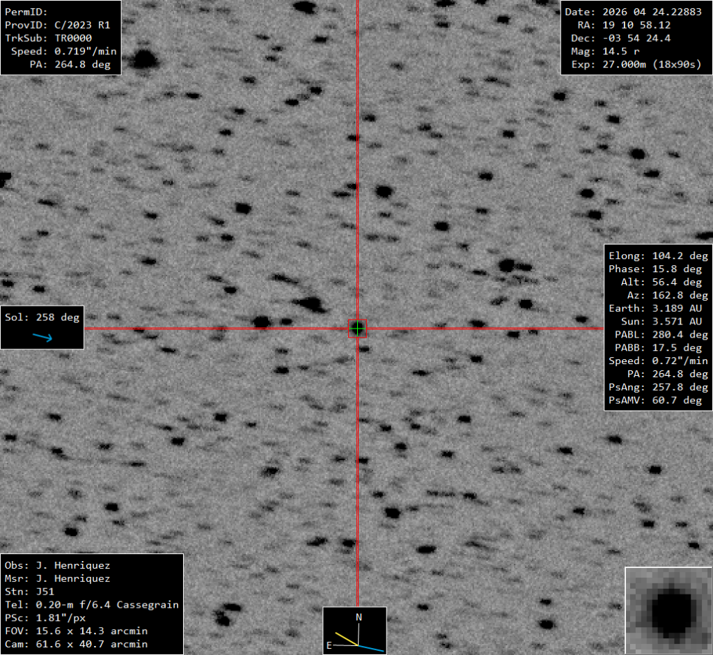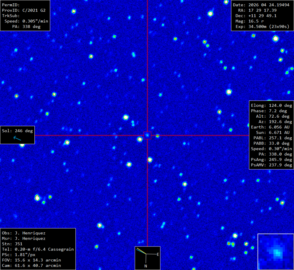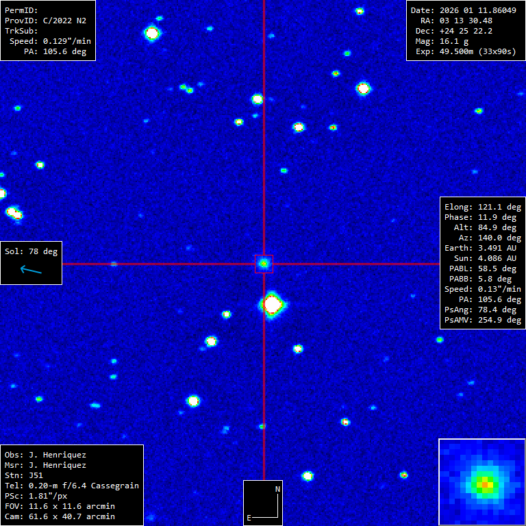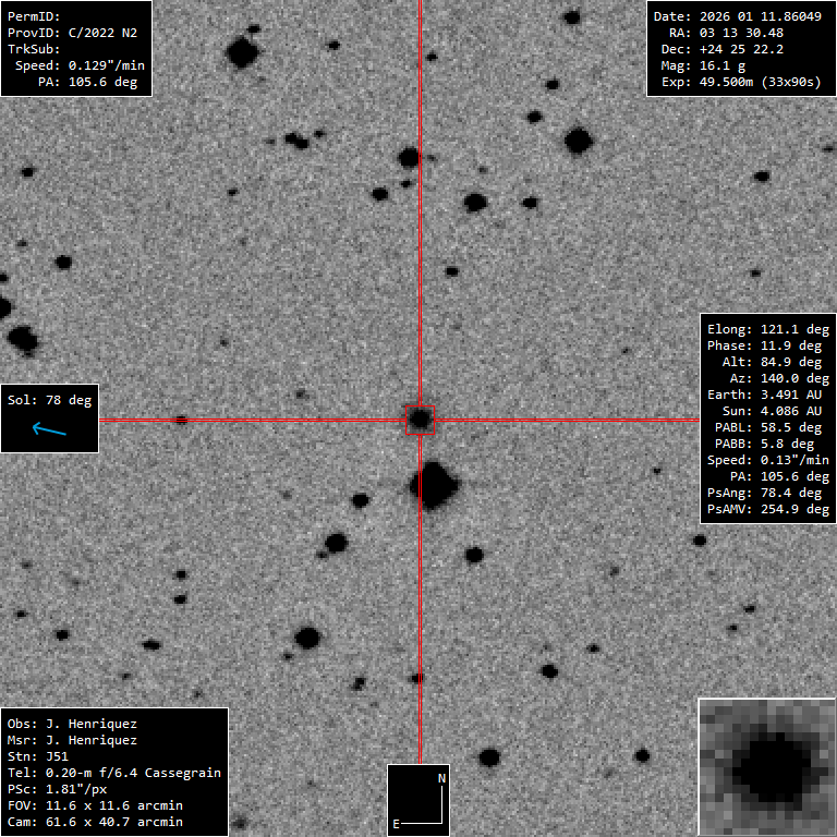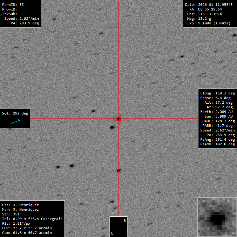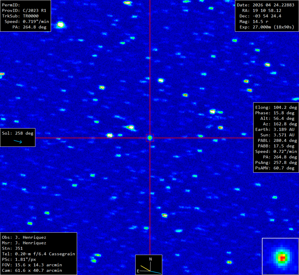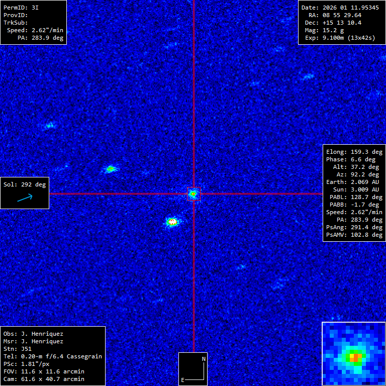 Otra noche espectacular. Se pudo seguir a 23 objetos, generando 66 medidas astrómetricas. Los cometas mas «fotogénicos», incluido el controvertido 3I ATLAS.